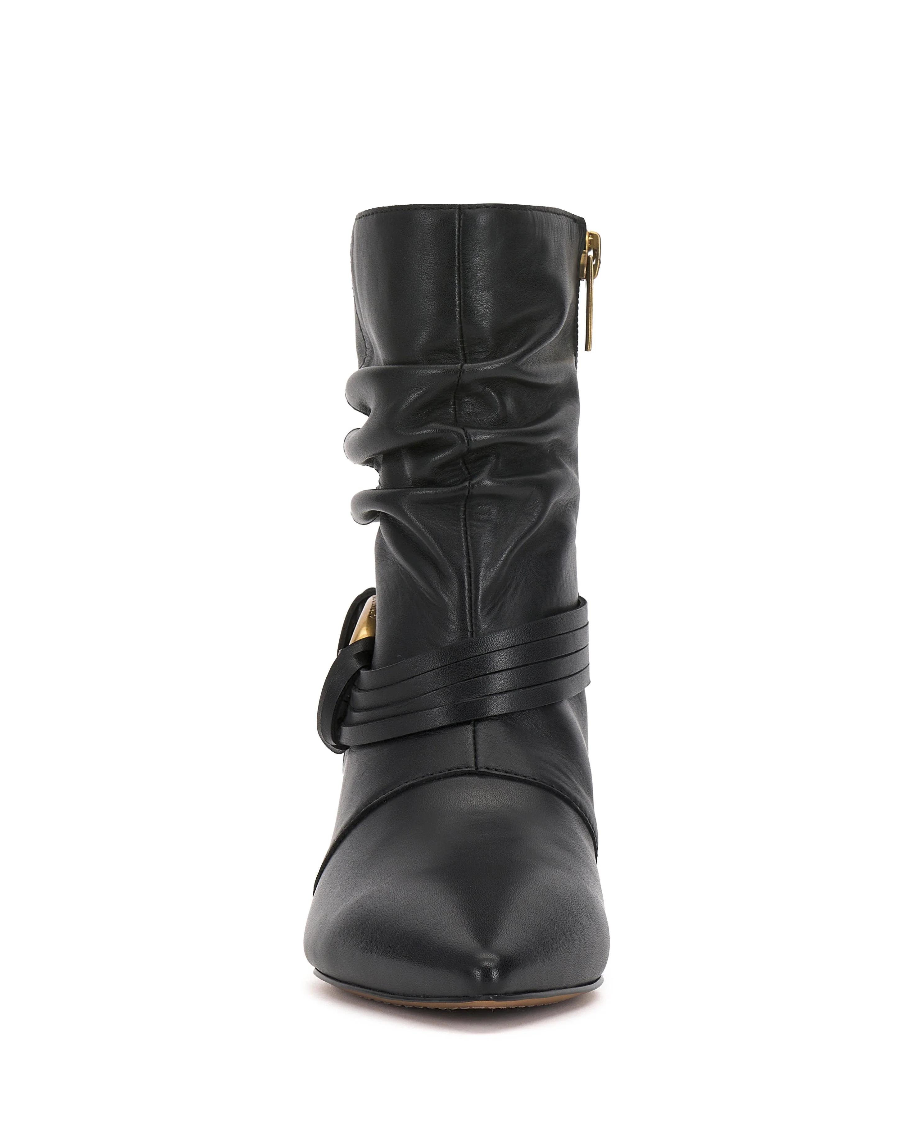 Perfect to pair with a trench coat and slacks, the Kirpa bootie flaunts modern sophistication from every angle. The ring accent pops against the slouchy design while the pointed toe and kitten heel finish this pair with classic elegance.